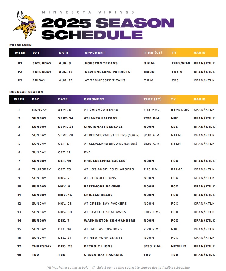 Minnesota Vikings 2025 Schedules NFL Game: