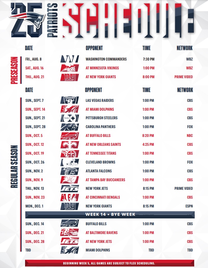 – **Founded**: November 16, 1959, as the Boston Patriots, a charter member of the American Football League (AFL); renamed the New England Patriots in 1971 after moving to Foxborough, Massachusetts.