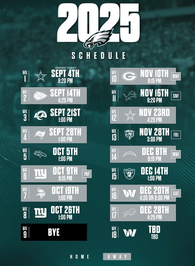 Philadelphia Eagles 2025 Schedule NFL Game: