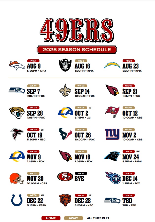 San Francisco 49ers 2025 Schedules NFL Game: